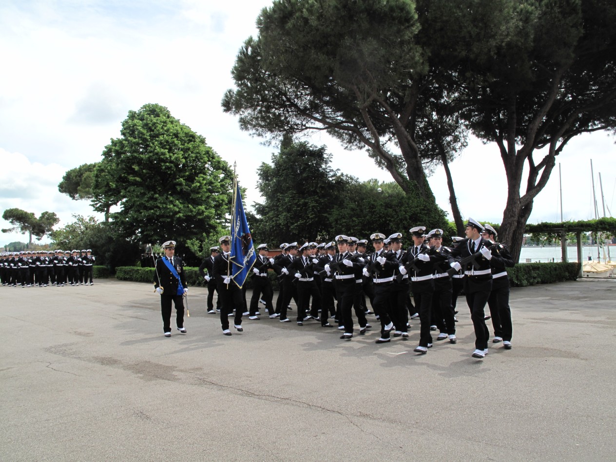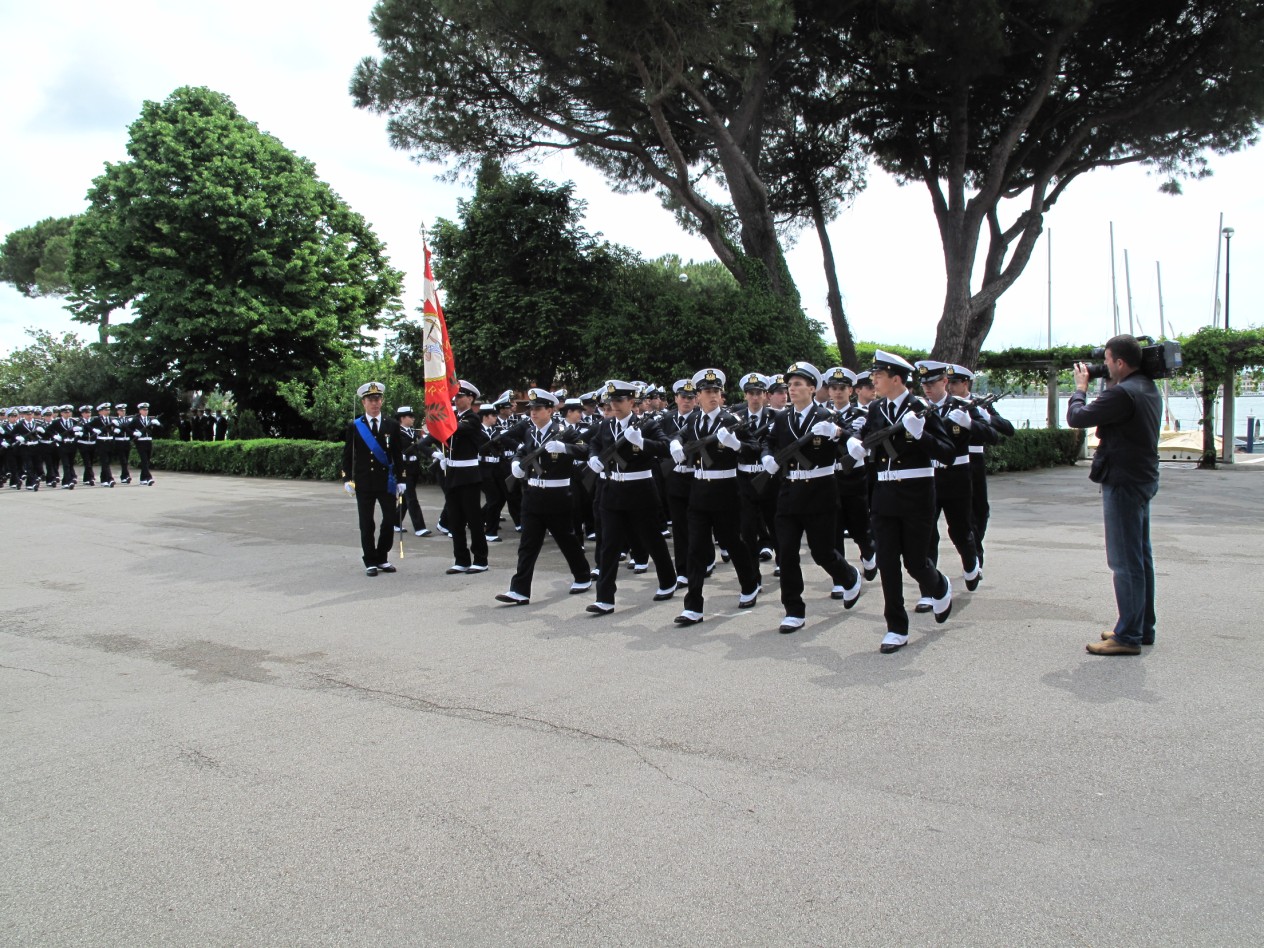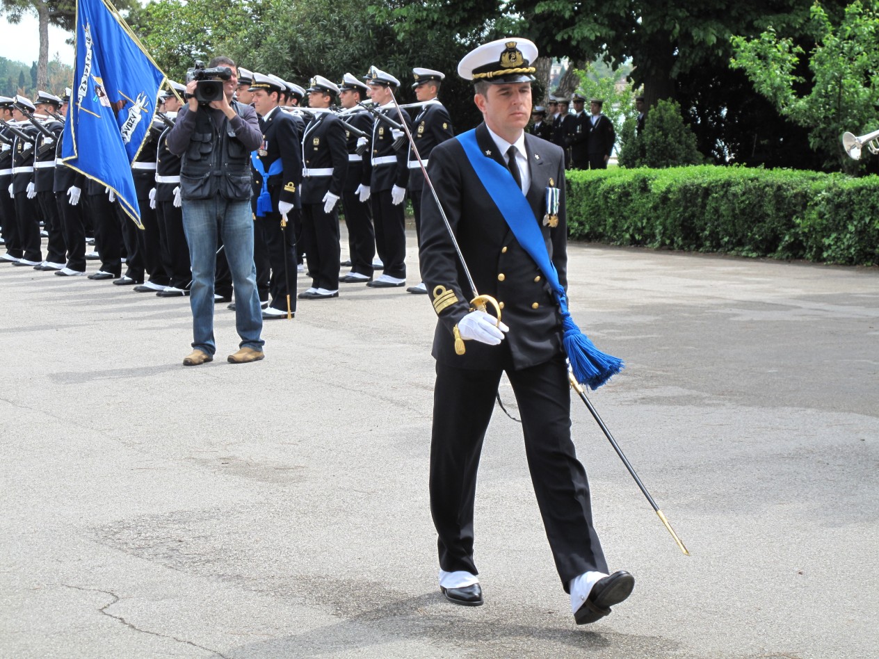 L'ex allievo Gianluca Miceli, vessillifero del Corso Polaris, lascia il luogo della cerimonia.