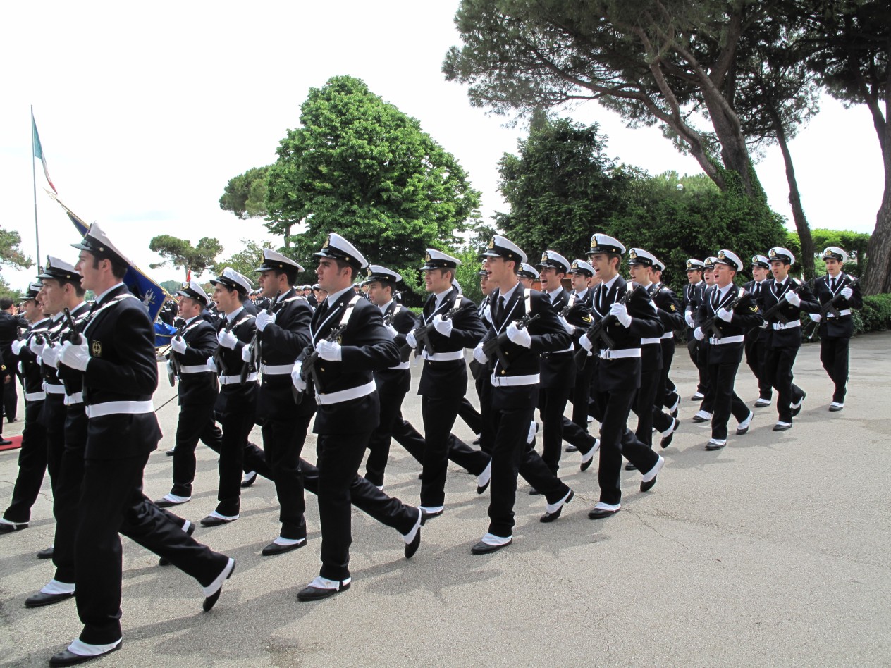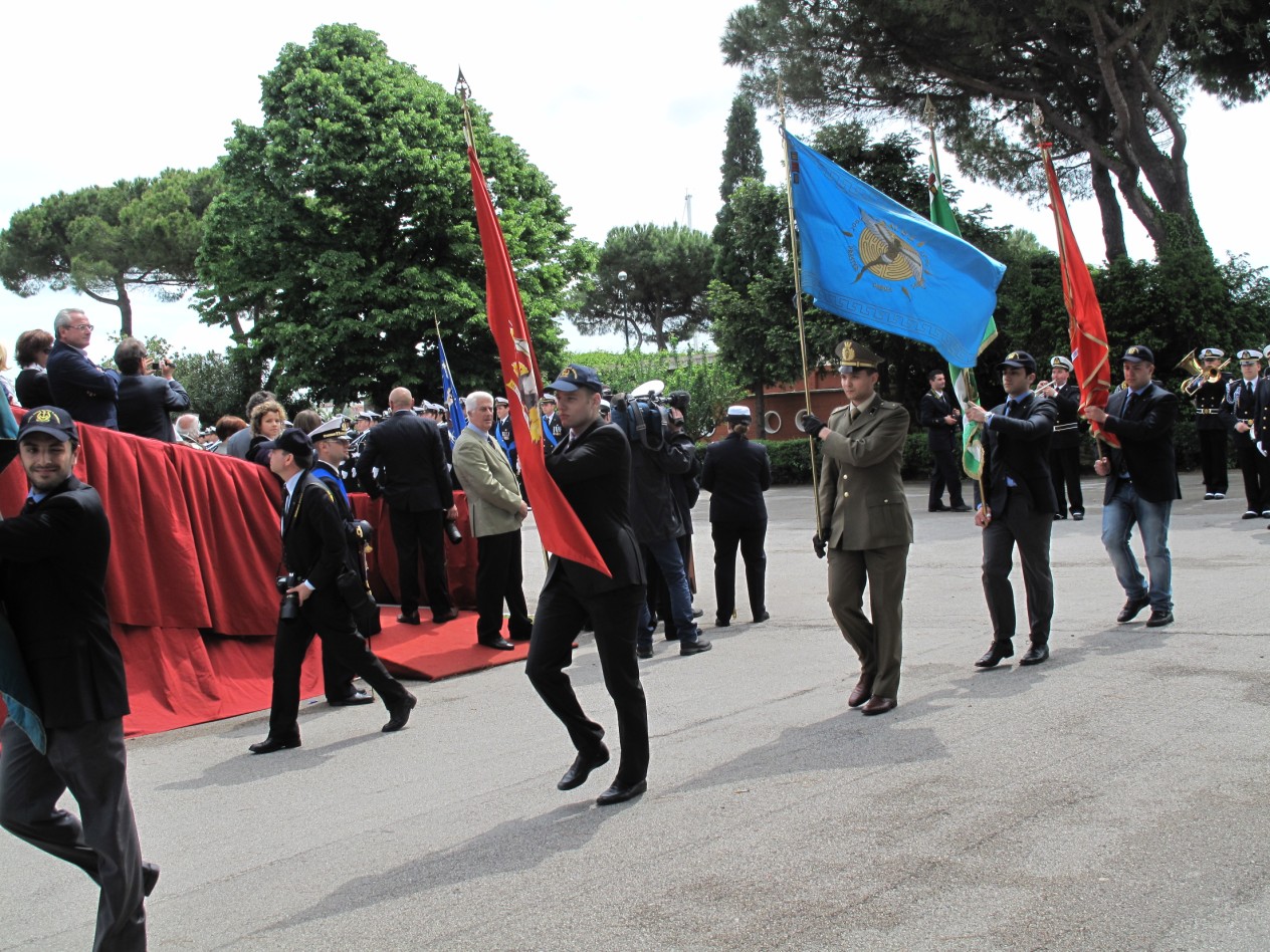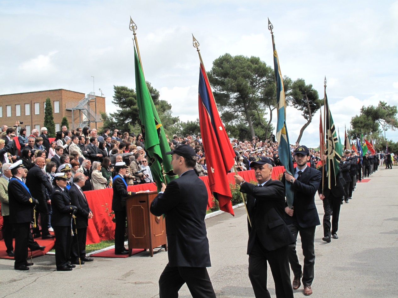 L'ex allievo Gianluca Miceli, vessillifero del Corso Polaris, lascia il luogo della cerimonia.