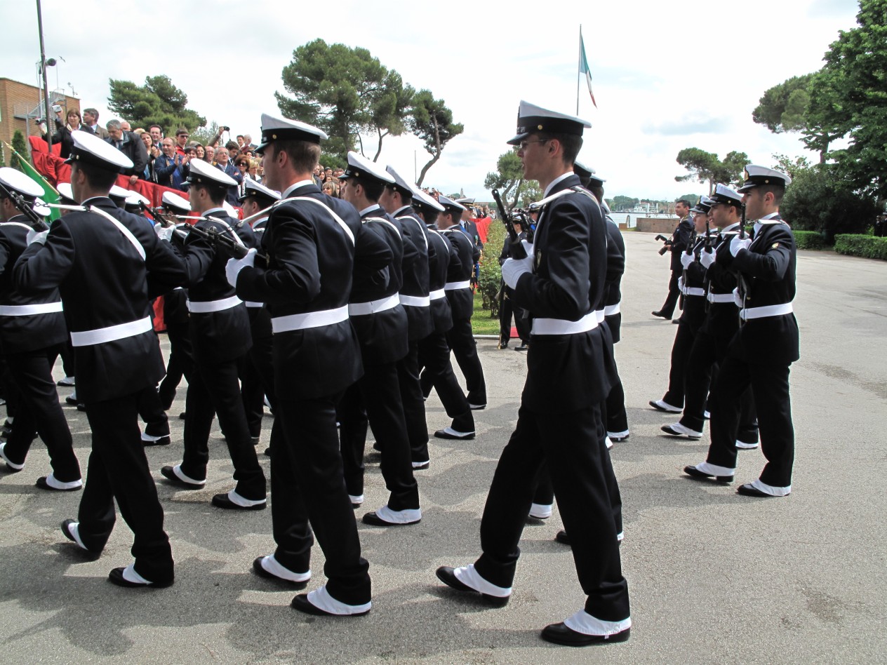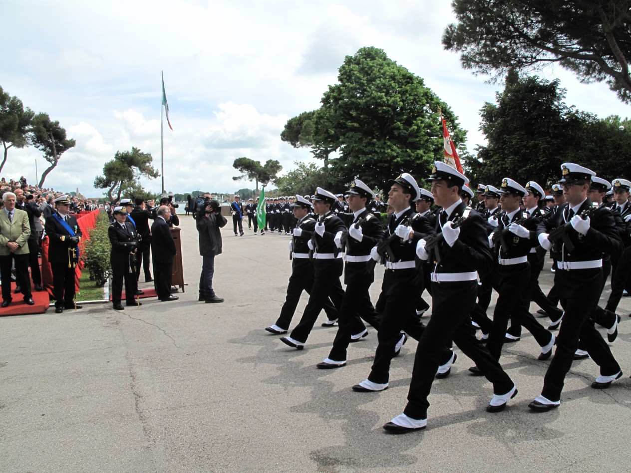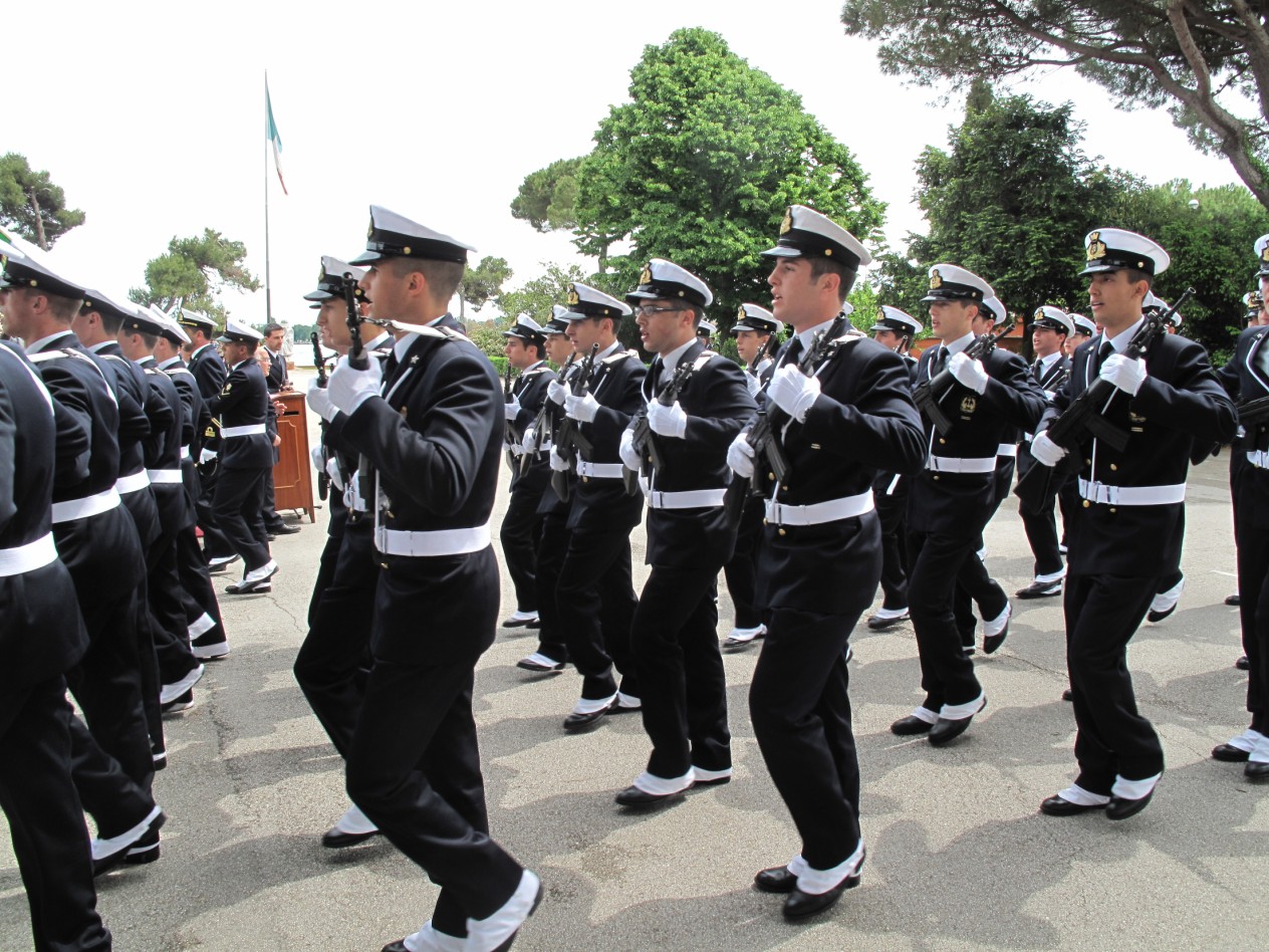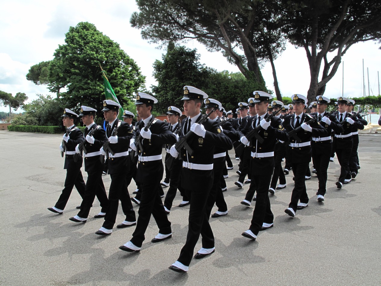 Gli allievi lasciano inquadrati il piazzale del campaccio dove si è tenuta la cerimonia.