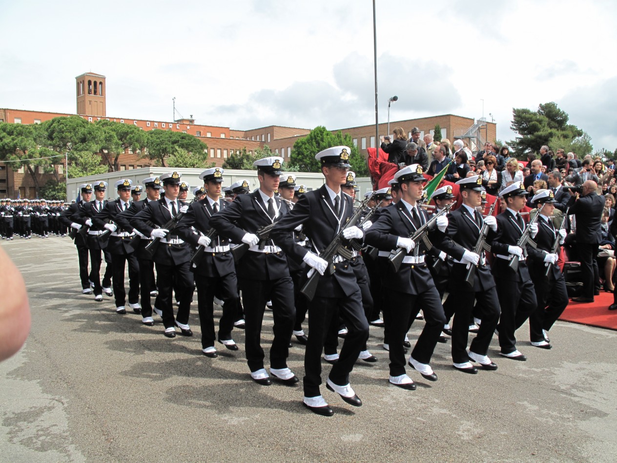 Fanno ingresso gli allievi sul luogo della cerimonia, mi fa impressione vederli armati, penso a cosa avrebbero potuto farci Uccio o il Cinese se ai nostri tempi fossero stati armati.... brrrr...