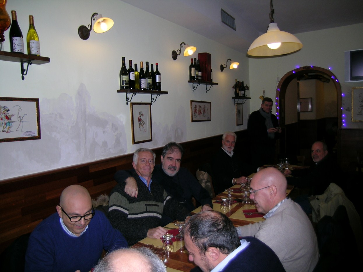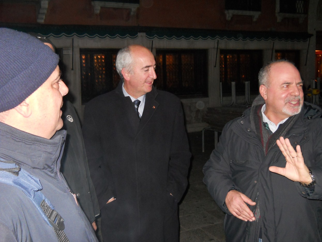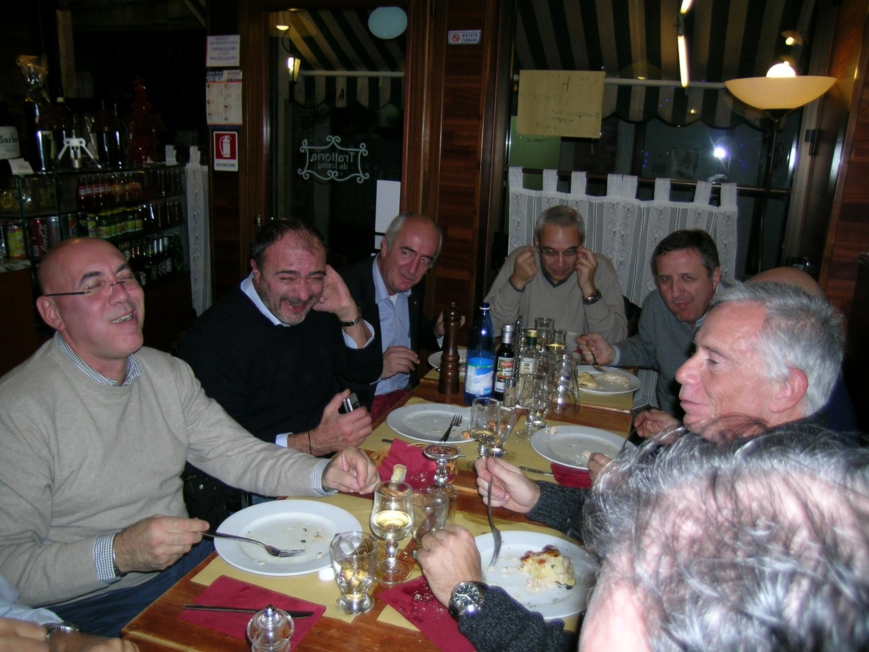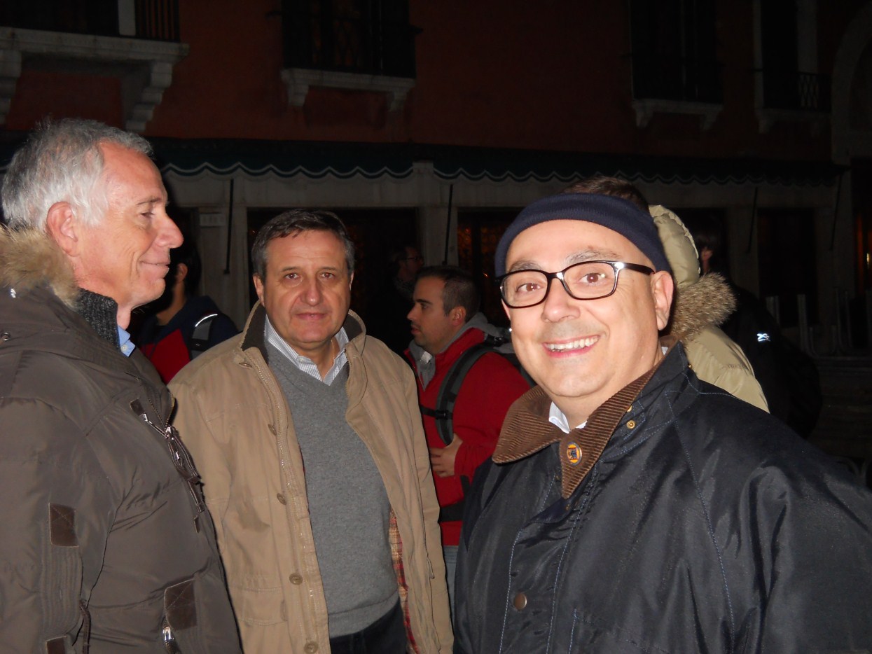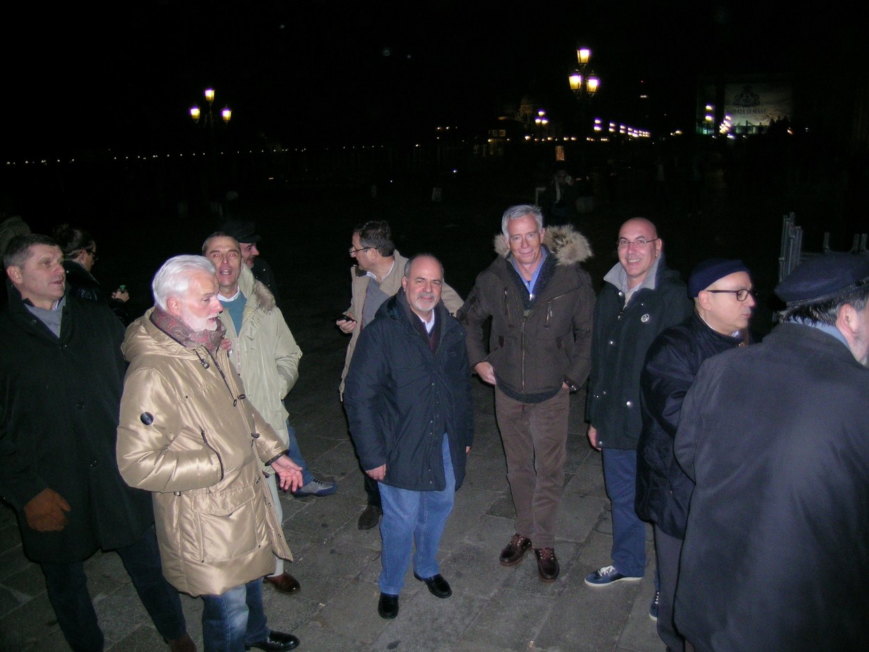 andiamo a far foto sul campanile di Piazza San Marco ![]() ![]() ![]() ![]() ![]() ![]() ![]() ![]() ![]() primo ritrovo e primo spritz a Sant'Elena, il tasso alcolico comincia a riscaldarci in questa fredda serata novembrina... ci tiene compagnia un famoso cardiochirurgo della marina ! ![]() raduno davanti all'Hotel Danieli per la prima cena insieme all'osteria da Jonny ![]() ![]() ![]() e' arrivato Gianni Grati, dopo 37 anni che non lo vedevamo: come noi il suo spirito non e' cambiato di un pelo, sempre lo stesso ... ![]() ![]() ![]() ![]() ![]() ![]() finalmente, al calduccio, possiamo ritemprarci dal viaggio con una simpatica cenetta a base di pesce. I ricordi di vita degli ultimi 37 anni di Gianni Grati, la sua esibizione di "gap toleder" con la quale si esibi' alla "Corrida", ci ha fatto passare una serata assolutamente indimenticabile !!! ![]() ![]() ![]() ![]() ![]() ![]() ![]() ![]() ![]() ![]() ![]() ![]() ![]() ![]() ![]() il nostro simpatico comandante ci ragguaglia sulle dimensioni.... della sua aorta ! ![]() ![]() ![]() ![]() ![]() ![]() ![]() ![]() ![]()