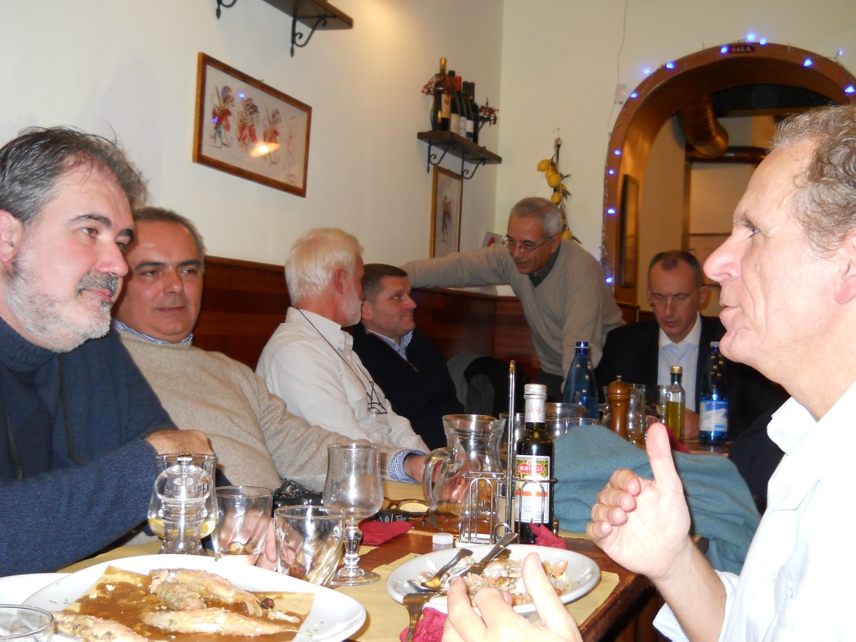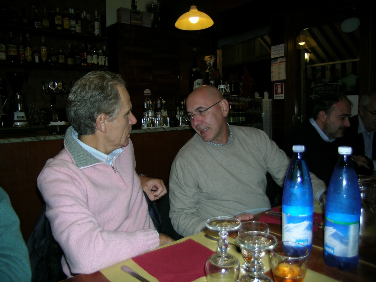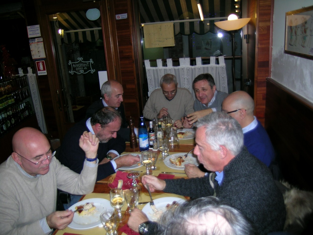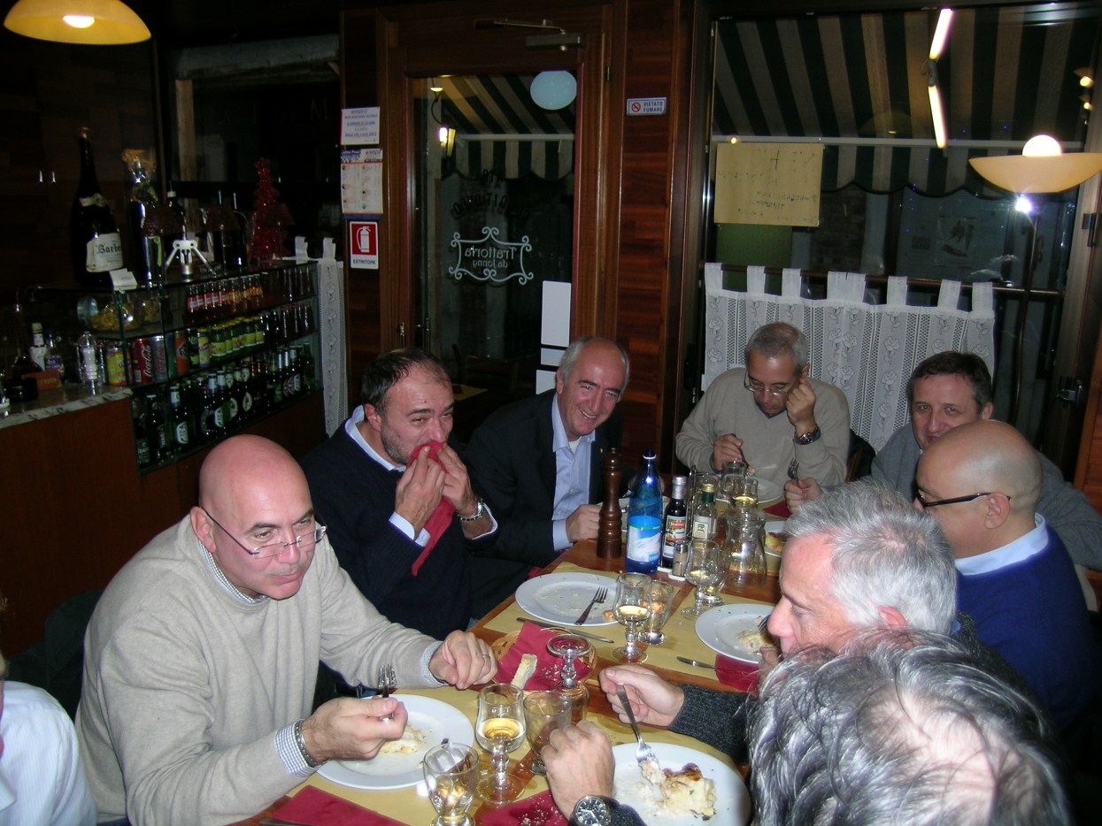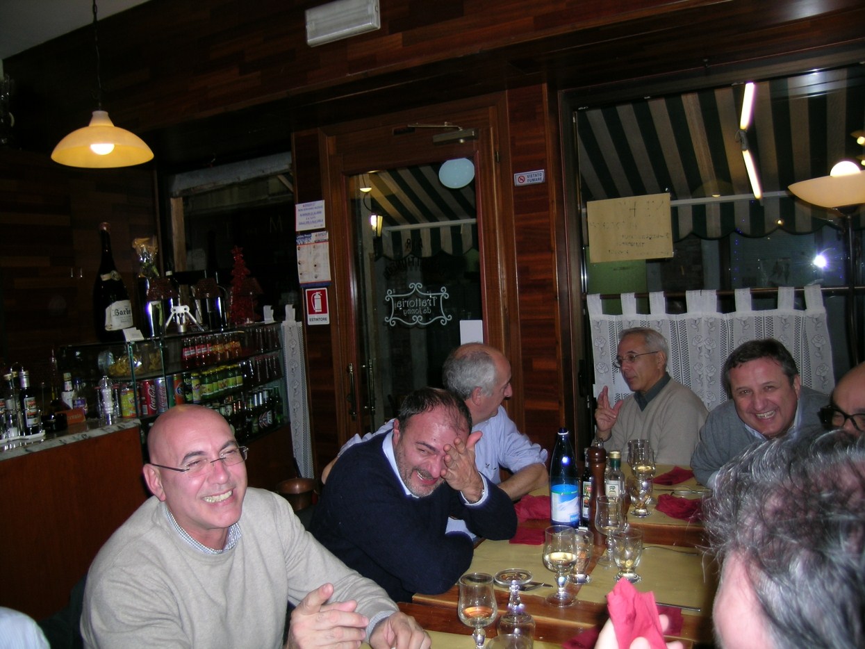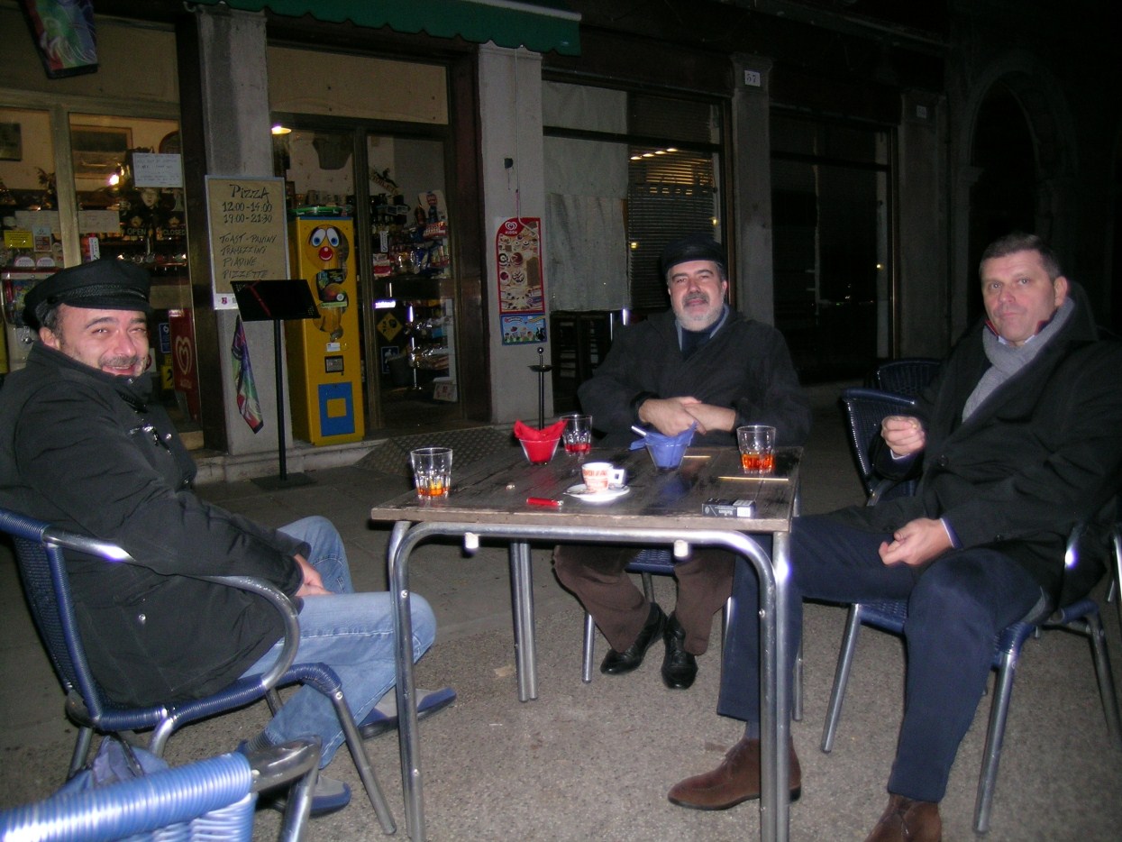 andiamo a far foto sul campanile di Piazza San Marco ![]() ![]() ![]() ![]() ![]() ![]() ![]() ![]() ![]() primo ritrovo e primo spritz a Sant'Elena, il tasso alcolico comincia a riscaldarci in questa fredda serata novembrina... ci tiene compagnia un famoso cardiochirurgo della marina ! ![]() raduno davanti all'Hotel Danieli per la prima cena insieme all'osteria da Jonny ![]() ![]() ![]() e' arrivato Gianni Grati, dopo 37 anni che non lo vedevamo: come noi il suo spirito non e' cambiato di un pelo, sempre lo stesso ... ![]() ![]() ![]() ![]() ![]() ![]() finalmente, al calduccio, possiamo ritemprarci dal viaggio con una simpatica cenetta a base di pesce. I ricordi di vita degli ultimi 37 anni di Gianni Grati, la sua esibizione di "gap toleder" con la quale si esibi' alla "Corrida", ci ha fatto passare una serata assolutamente indimenticabile !!! ![]() ![]() ![]() ![]() ![]() ![]() ![]() ![]() ![]() ![]() ![]() ![]() ![]() ![]() ![]() il nostro simpatico comandante ci ragguaglia sulle dimensioni.... della sua aorta ! ![]() ![]() ![]() ![]() ![]() ![]() ![]() ![]() ![]()