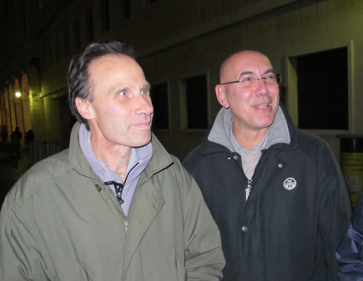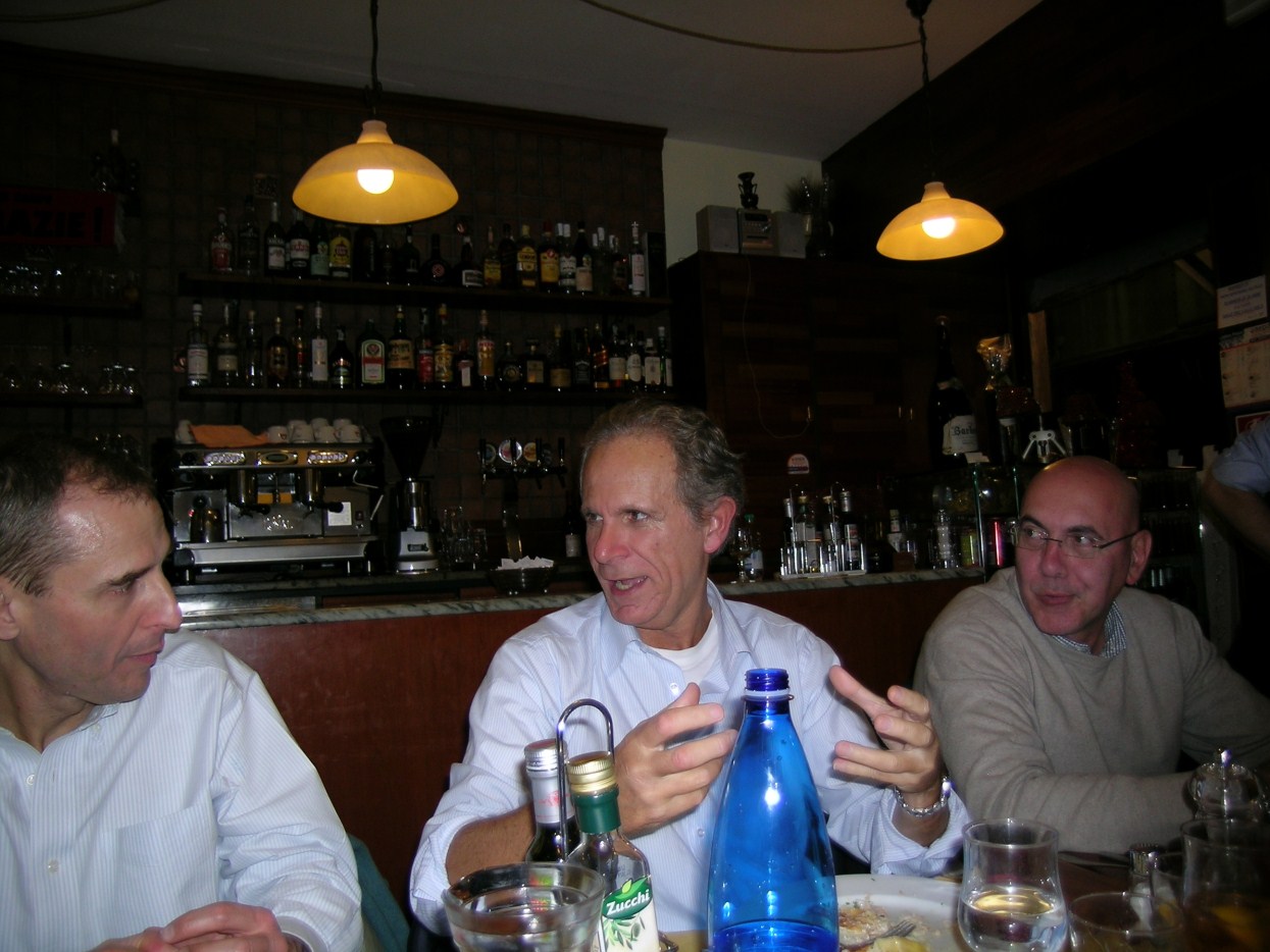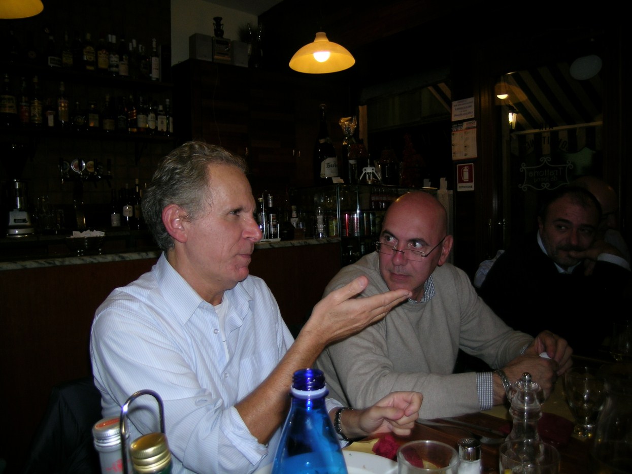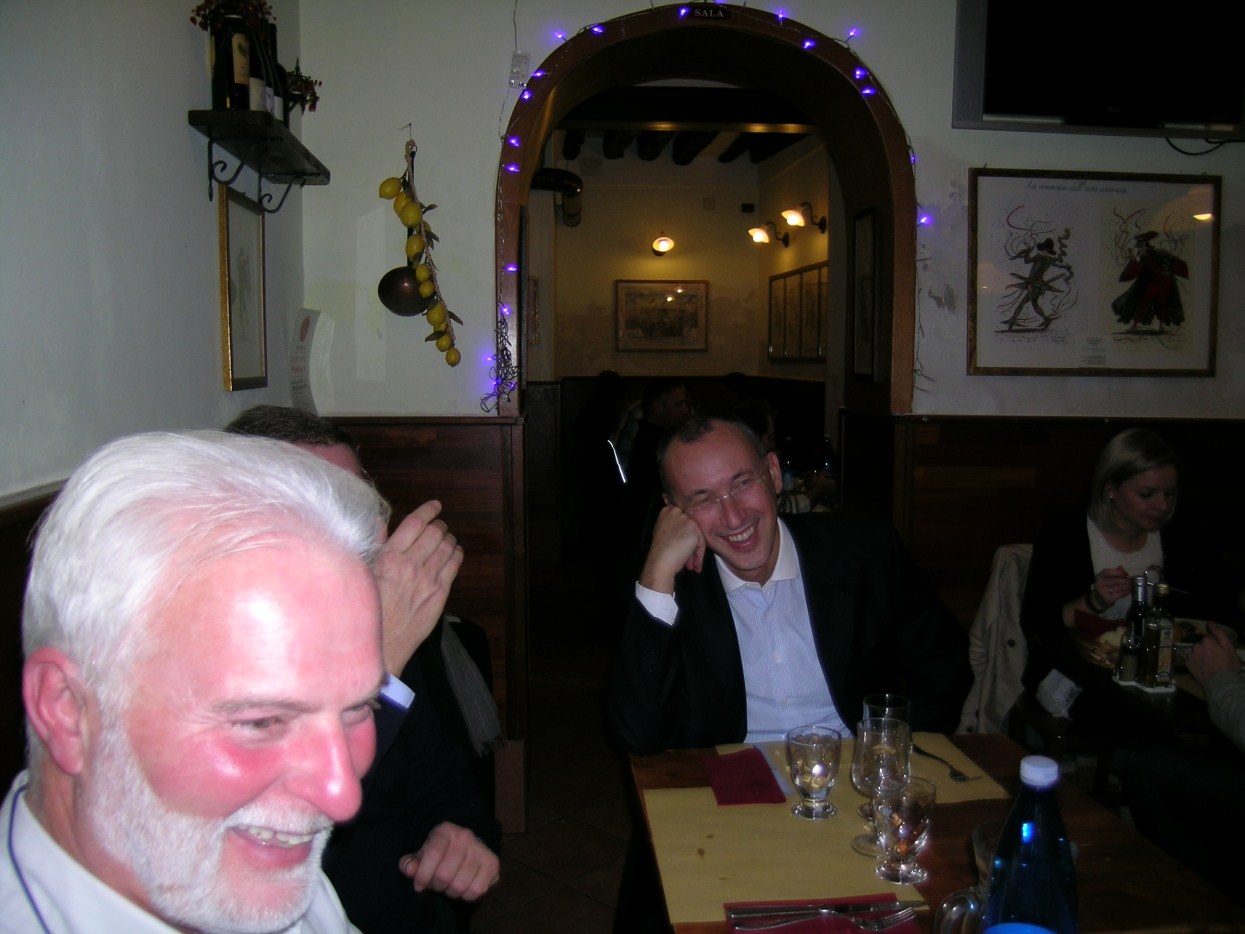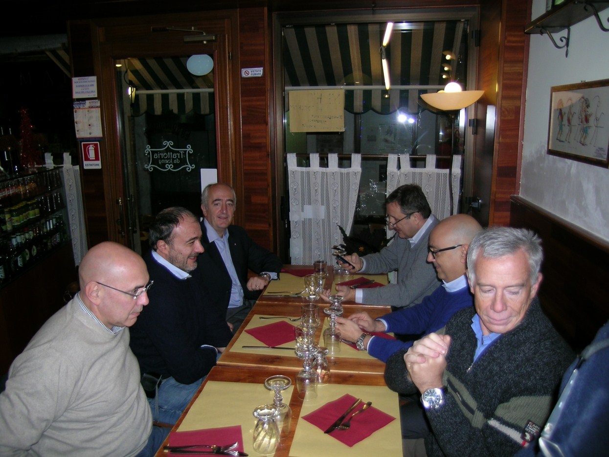 andiamo a far foto sul campanile di Piazza San Marco ![]() ![]() ![]() ![]() ![]() ![]() ![]() ![]() ![]() primo ritrovo e primo spritz a Sant'Elena, il tasso alcolico comincia a riscaldarci in questa fredda serata novembrina... ci tiene compagnia un famoso cardiochirurgo della marina ! ![]() raduno davanti all'Hotel Danieli per la prima cena insieme all'osteria da Jonny ![]() ![]() ![]() e' arrivato Gianni Grati, dopo 37 anni che non lo vedevamo: come noi il suo spirito non e' cambiato di un pelo, sempre lo stesso ... ![]() ![]() ![]() ![]() ![]() ![]() finalmente, al calduccio, possiamo ritemprarci dal viaggio con una simpatica cenetta a base di pesce. I ricordi di vita degli ultimi 37 anni di Gianni Grati, la sua esibizione di "gap toleder" con la quale si esibi' alla "Corrida", ci ha fatto passare una serata assolutamente indimenticabile !!! ![]() ![]() ![]() ![]() ![]() ![]() ![]() ![]() ![]() ![]() ![]() ![]() ![]() ![]() ![]() il nostro simpatico comandante ci ragguaglia sulle dimensioni.... della sua aorta ! ![]() ![]() ![]() ![]() ![]() ![]() ![]() ![]() ![]()