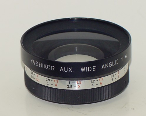La Yashica Electro 35 può montare, avvitati sull'obiettivo fisso 45 mm f1.7, due aggiuntivi ottici, uno grandangolare e uno tele, che incrementa la focale a 58.4 mm, più interessante è l'aggiuntivo grandangolare che porta a 37.7 mm la focale. L'obiettivo della Electro 35 è fisso, lo Yashinon 45mm f1.7 la composizione ottica è di 6 elementi in 4 gruppi, con massima chiusura a f16, la distanza minima di messa a fuoco è di 0,8 m e la focheggiatura è affidata a un mirino con telemetro molto luminoso e preciso.