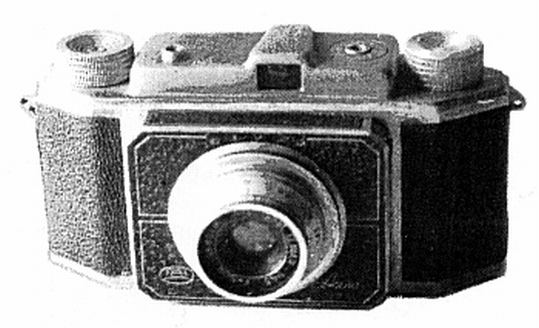 Ducati opened an optics department in 1939, and had plans to market their first camera in 1941. But, due to the war and the military need, the official production and delivery to the public started in 1946. Simplex production began in 1950. So the Simplex qualifies as an early half-frame which helped move the half-frame format to a new level. The Simplex was the simpler of the two half-frame cameras made by Ducati. Its big brother -- the Sogno -- had many more features. The Simplex came with a collapsing, non-interchangeable, focusing 35mm (f3.5) lens. It had a simple viewfinder, unlike the Sogno's rangefinder. Speeds of B, 1/25 - 1/250. It was a manual camera with no meter and used special cassettes. Obviously, the designer was left-handed! |