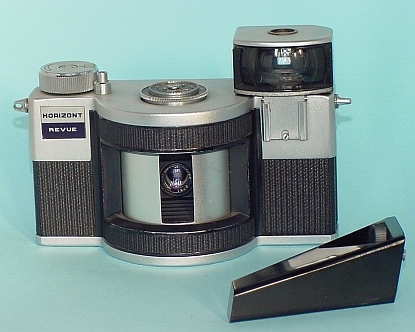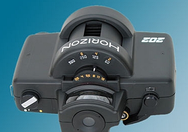 dall'interno del mirino allo sopo di equilibrare e parallelizzare la fotocamera al momento dello scatto. La Horizont veniva venduta custodita all'interno di una borsa pronto nella quale trovavano alloggiamento anche l'impugnartura, utile per non fotografarsi anche le dita, e un set di tre filtri specifici da anteporre all'ottica, operazione non semplice da effettuarsi a metà della carica dell'otturatore e del tamburo rotante che protegge e delimita l'ottica durante la rotazione stessa. Il caricamento della pellicola in una