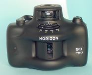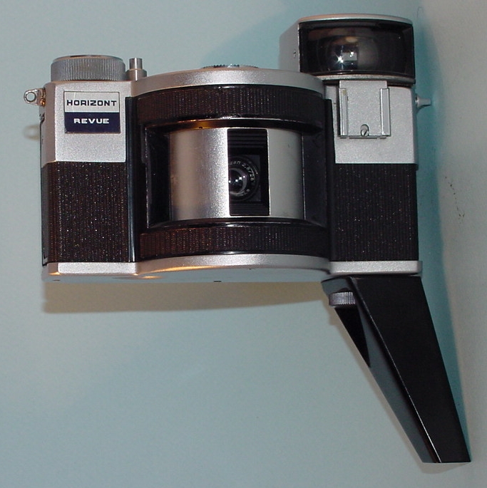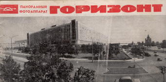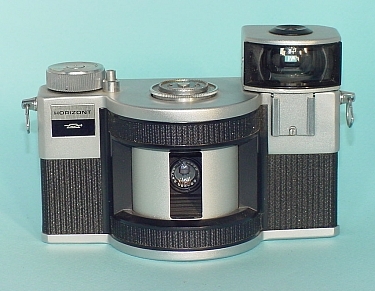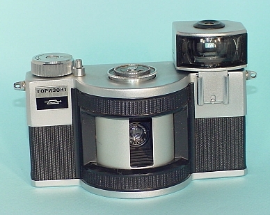 La Horizont del 1967 è stata preceduta dal modello FT2 (1958-1965) costruita in oltre sedicimila esemplari, a sua volta preceduta dalla FT3 (rara) e da prototipi prebellici.. La Horizont fu prodotta da KMZ tra il 1967 e il 1973 ed è stata costruita in meno di 50.000 esemplari. Concepita da Soloviev nel 1965, permette 24 riprese 24x58mm su un rullino da 36 pose 24x36mm, i fotogrammi 24x58mm sono perfettamente stampabili con gli ingranditori 6x6cm, il diaframma va da f/2.8 a f/16, ha un angolo di ripresa di 45° verticali e di 120° orrizzontali grazie alla sua ottica rotante OF 28-P 28mm F2.8 che focheggiata in modo fisso sull'iperfocale le permette di avere una profondità di campo da 1,5 metri all'infinito. L'otturatore è dotato di 4 velocità :1/30-1/60-1/125-1/250sec. I selettori dei tempi di otturazione e dei diaframmi nonchè il memo della sensibilità della pellicola sono coassiali e posizionati sul top. L'apparecchio è dotato di un mirino galileiano con visione a 120°(la stessa dell'obiettivo) che viene inserito nella slitta portaccessori presente anteriormente sul corpo macchina, a destra dell'ottica. Lo stesso può essere estratto dal proprio alloggiamento: tale scelta