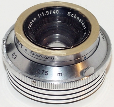 innesto a vite 30 mm, da notare l'innesto allargato con il tipico barilotto a righette, la parte frontale di quest'ottica è stata tagliata per compattare al massimo la sporgenza, trovata su una Star-50 con il motore di avanzamento silenziato. Probabilmente era necessaria un'ottica luminosa invece del 25mm (a fuoco fisso) compattissimo prodotto a questo scopo ma assai poco luminoso.