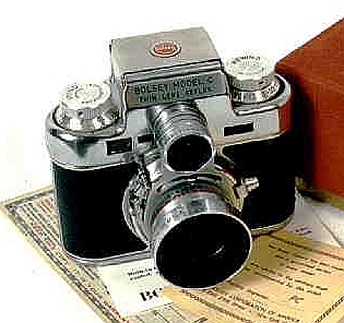 multiformat (18x24 24x24 o 24x36) projected by G.Bennet and manufactured by P.Bisch sold between 1947 and 1948 without success. LENSE: Berthiot 75/3.5, shutter from 1sec to 1/300, 30 meters of film. For other informations click on picture