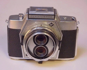Year: 1960-63. Agfa produced the Flexilette with a design apparently based on the Silette body upside down, so the lever wind is on the bottom left. The Flexilette has waist level viewing like all the cameras we have been looking at, and manual controls.