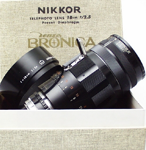 NIKKOR H f=18:2.5cm 6 elementi in 4 gruppi. Il tele-obbiettivi da 180mm a 500mm erano gli stessi per telemetro, modificati per il 6x6 solo in montatura per Zenza Bronica. Se il 180/2.5 per Nikon telemetro è raro, la versione per Bronica 180/2.5 lo è assai di più.