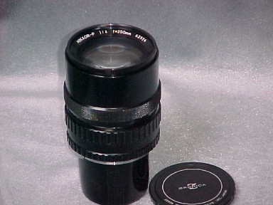 NIKKOR-P f=200:4mm 5 elementi in 5 gruppi, innesto filtri da 67mm a vite. Paraluce incorporato estraibile, dotata di una lente addizionale di serie per le brevi distanze. Qualche piccola variazione estetica e nella formula ottica durante la vita di quest'ottica.
